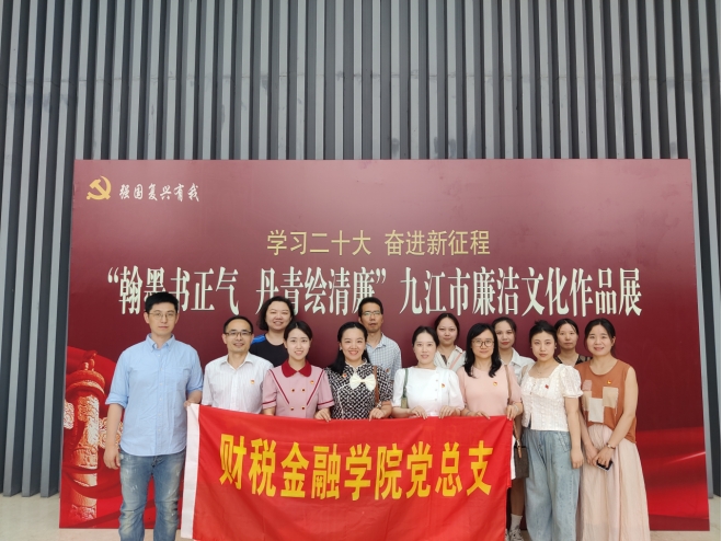 为学习贯彻习近平新时代中国特色社会主义思想和党的二十大精神,弘扬革命文化和社会主义先进文化,加强党员干部党风廉政教育,筑牢拒腐防变的思想,6月30日,fun88官网体育党总支赴九江市民服务中心,参观“翰墨书正气、丹青绘清廉”廉洁文化书法美术作品展,开展主题党日活动。