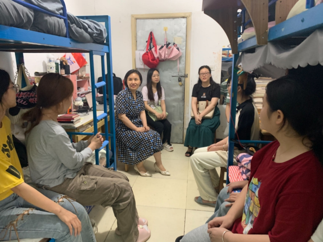 为进一步落实校园安全稳定,切实加强员工安全管理,6月19日下午,董事长彭慧深入宿舍倾听员工心声,掌握员工思想动态。fun88官网体育党总支副书记王怡然、王能翔及相关班主任陪同走访。