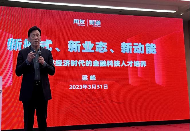 公司教师全程参与了数智赋能与人才培养的学习和讨论活动,认真学习了专家对于金融专业未来发展的解读。其中,新道科技首席专家梁峰聚焦“‘新模式、新业态、新动能’数字经济时代的金融科技人才培养”进行了分享。他结合金融学科发展的专业重塑和数智金融人才培养的新需求,详细解读用友新道金融人才培养的产业资源创新,助力院校改革模式创新,培养复合型金融科技人才。