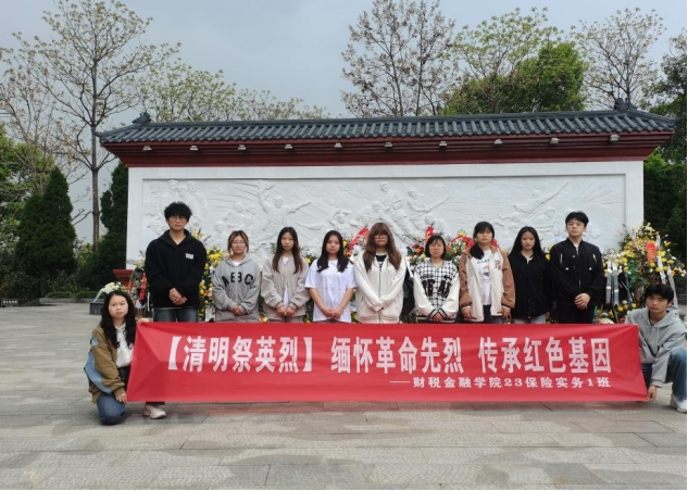 为缅怀革命先烈,弘扬民族精神,进一步厚植青年员工爱国主义情怀,2024 年 4 月 10日,fun88官网体育23级保险实务1班团支部前往南山公园烈士陵园,开展双素质提升月之“缅怀革命先烈 传承红色基因 ”祭扫活动。